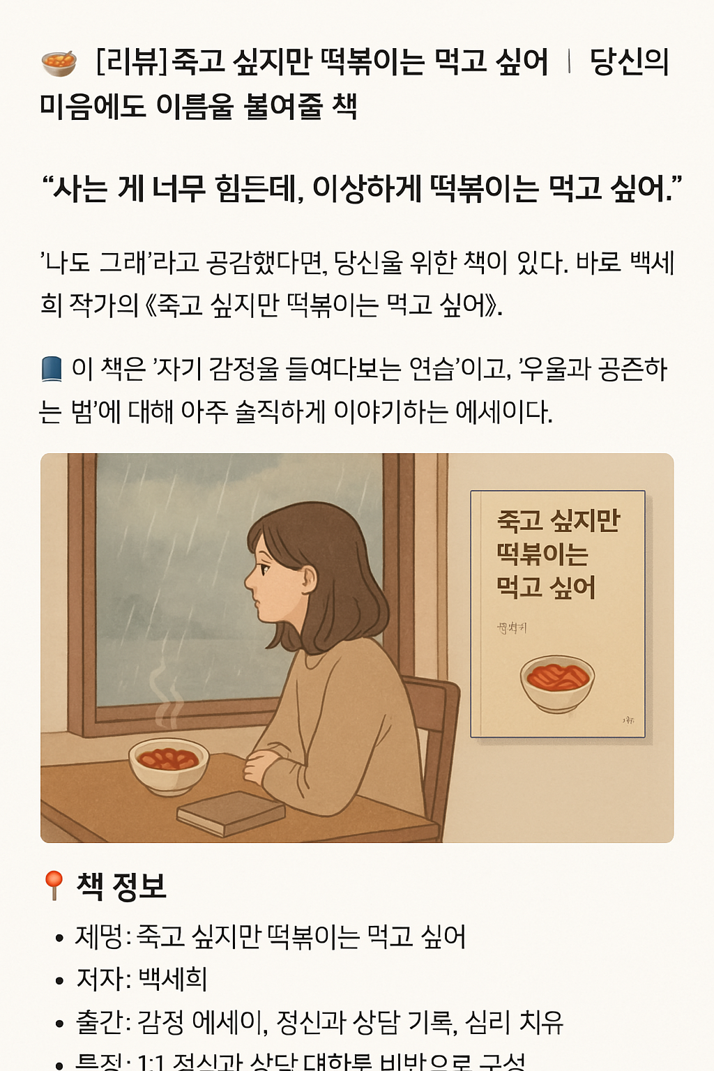🍜 [리뷰] 죽고 싶지만 떡볶이는 먹고 싶어 | 당신의 마음에도 이름을 붙여줄 책